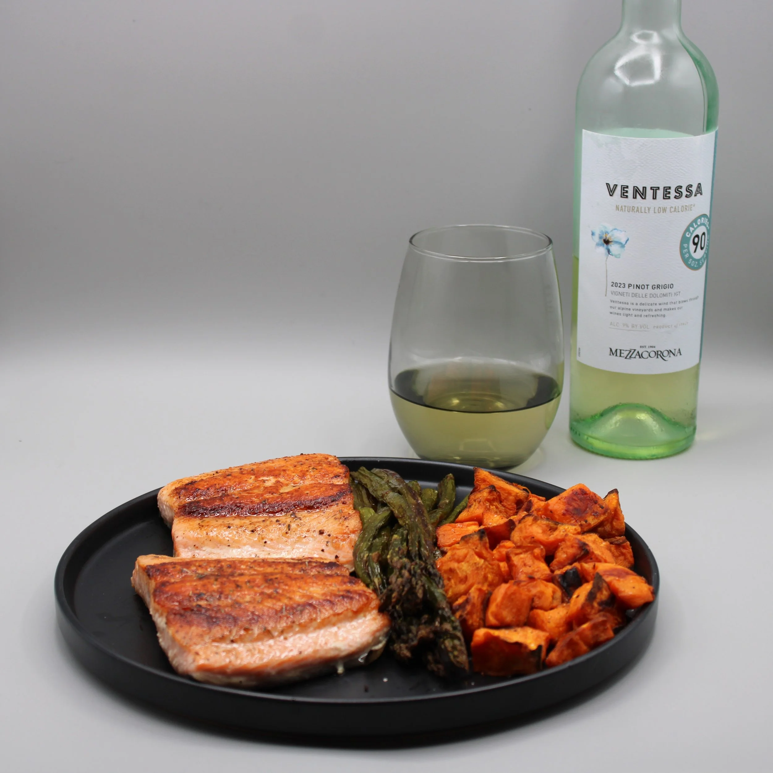 Pan-Seared Salmon with Roasted Sweet Potatoes & Asparagus